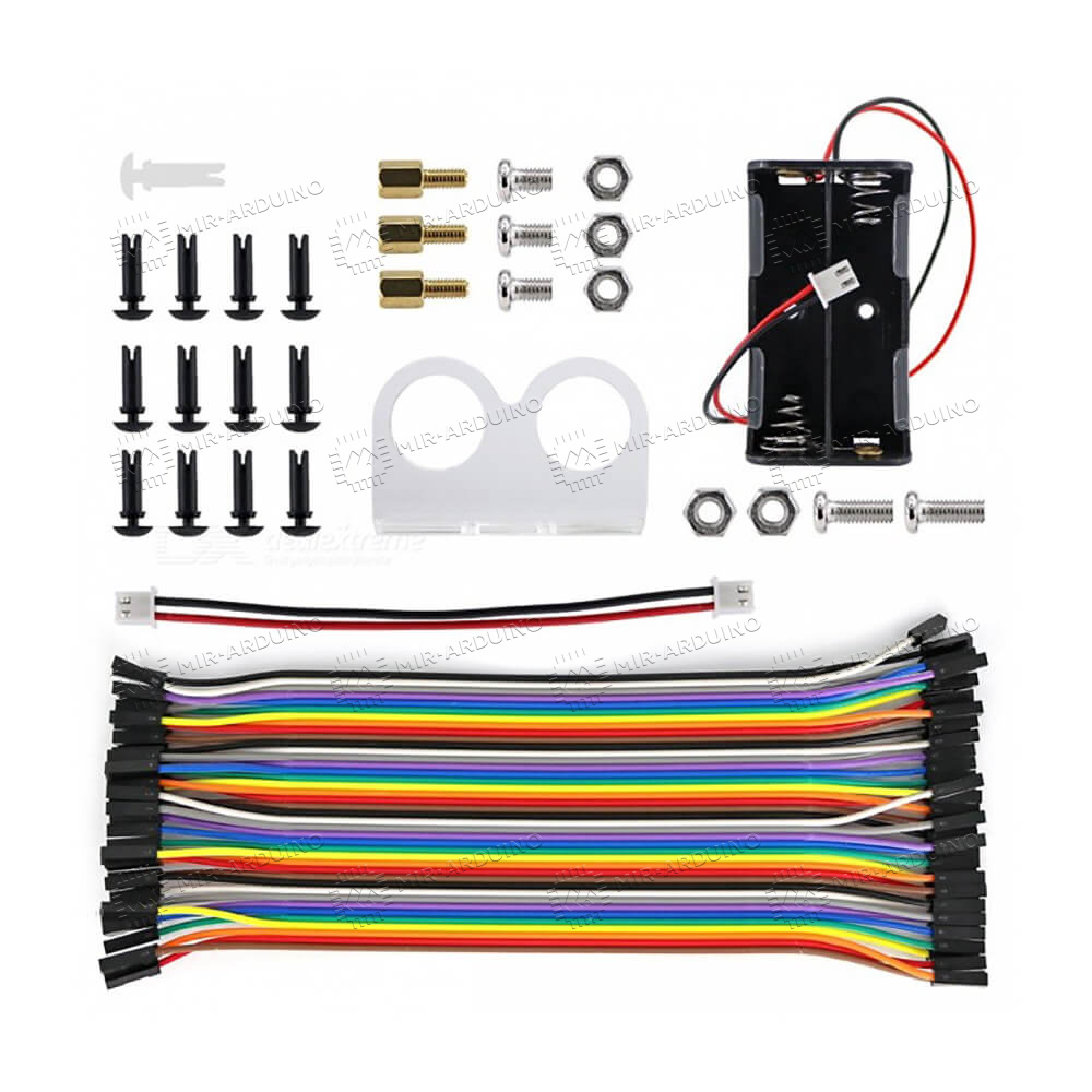 Набор для моделирования Ардуино (Arduino) 4WD Smart Car поможет собрать машинку на пульте управления. Умный конструктор используется для обучения азам робототехники и программирования, подойдет как для новичков, так и для опытных инженеров. Робот-автомобиль работает от платы Arduino UNO, которая входит в набор. Собранным устройством можно управлять с помощью пульта либо смартфона через Bluetooth модуль. Машина может передвигаться по разным траекториям, объезжать препятствия, следовать за объектом. При желании можно расширить функционал робота путем установки дополнительных модулей и датчиков.